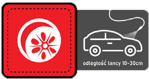 Pomaga usuwać nagar i naloty z klocków hamulcowych. Po włączeniu przycisku opryskać felgi przed umyciem auta. Końcówkę lancy trzymać w odległości 10-30cm od felgi. |