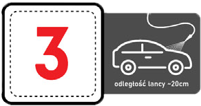 Program aktywnej piany ułatwia zmiękczanie brudu i przygotowuje powierzchnię pojazdu do mycia zasadniczego. Nanieś aktywną pianę na cały pojazd. Końcówkę lancy trzymaj w odległości około 20cm od karoserii. |